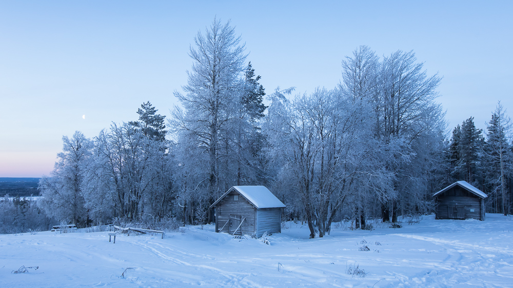 Vuoden takainen kaamosvaellus oli hieno, mutta ahkion päivittäinen liikuttelu vei valokuvauspuuhilta parhaan terän. Lisäksi reilusti napapiirin pohjoispuolella ei päässyt nauttimaan auringon kultaisesta valosta. Varmimmin sekä lunta että aurinkoa on vuodenvaihteessa tarjolla Kuusamon seudulla, minne matkani vei tällä kertaa. Kun majapaikaksi järjestyi upeissa Etelä-Kuusamon vaaramaisemissa sijaitseva Närängän erämaatila, olivat puitteet valokuvaus-hiihtoreissulle paremmat kuin koskaan.