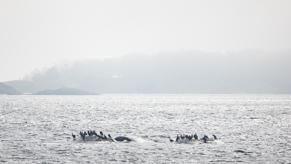 Noin tunnin mittainen merimatka sujui mukavasti aluksen kannella sumulauttoja ihaillen ja lintuja kiikaroiden. Linjataulun päältä löytyi merikotkapari, muuten näkyi lähinnä merimetsoja.