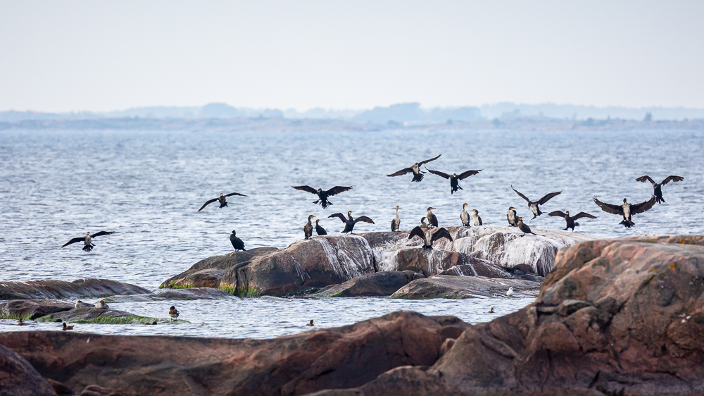 Pohjoiskärjen ylitse viuhui hurjasti petolintumuuttoa: varpushaukkoja syöksyi saaren yli noin minuutin välein, joukossa muutamia tuulihaukkoja, hiirihaukkoja sekä yksi nuolihaukka. En juurikaan harrasta lintumuuton seurantaa, mutta ymmärsin silti sen verran, ettei moinen ole aivan jokapäiväistä. Toden totta: edellisenä päivänä Hangon lintuasemalla oli laskettu varpus- ja tuulihaukkamuuton uusi Suomen ennätys! Varpushaukkoja oli nähty järjettömät 1177 kappaletta.