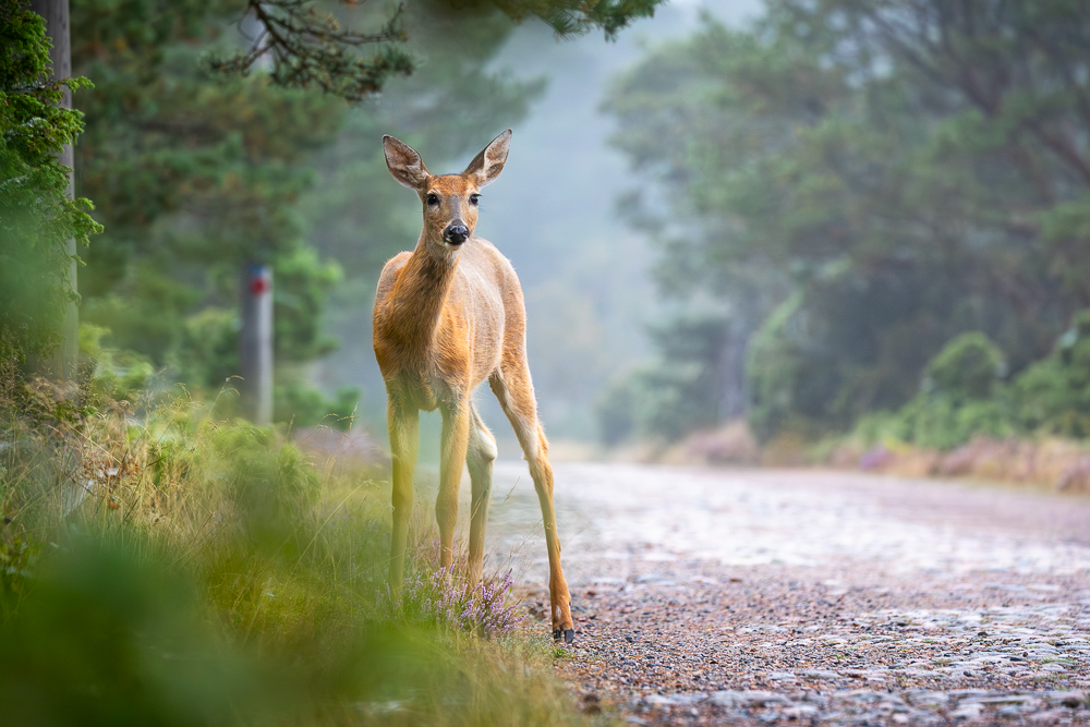Vaihdoin telen kameraan niin hiljaa kuin osasin ja kauris pysyi edelleen muutaman metrin päässä. Sain kuvailla sitä kaikessa rauhassa hyvän tovin, kunnes eläin köpötteli mukulakivitien toiselle puolelle. Seurasin sitä 10-20 metrin päässä. Kauris jatkoi ruokailuaan ja vilkuili välillä kuvaajaan. Suositulla matkailusaarella se oli varmasti tottunut ihmisiin. Vaikka kotipuutarhassakin kauriita riittää, ne sentään lähtevät ihmisiä karkuun. Joka tapauksessa hieno kohtaaminen sumuiseen aamuun!