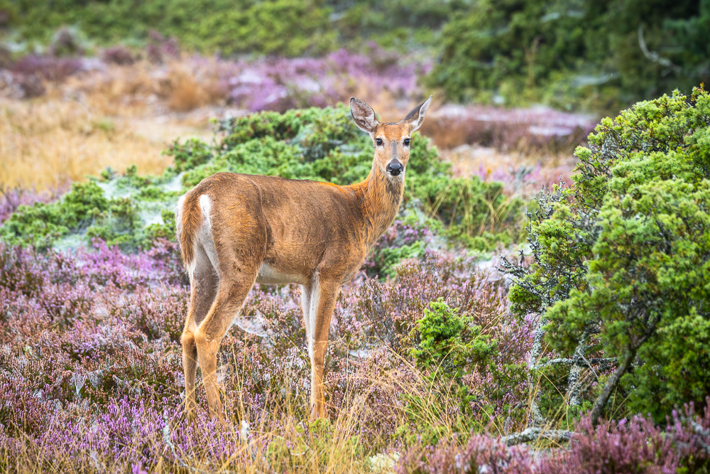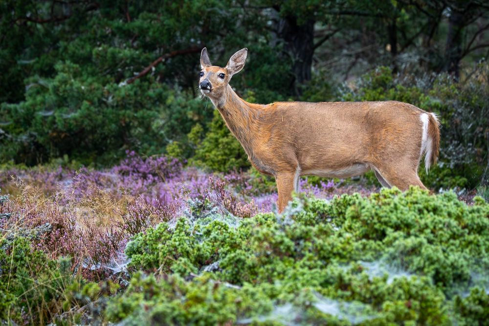 Siinä nummella kyykkiessäni tuli vahva tunne, että joku tuijottaa. Käännyin ympäri ja näin alle kolmen metrin päässä nuoren valkohäntäkauriin. Se tuli uteliaana katsomaan, mikä ihmeen mytty nummella kökkii.