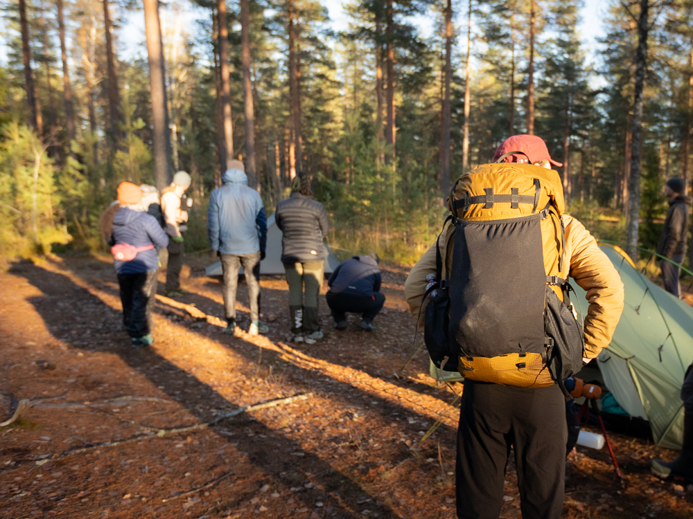 Lopulta palikat saatiin loksahtamaan kohdalleen: sopiva nuotiokatos varattiin Shelby Outdoorin sponsoroimana ja parisenkymmentä reipasta retkeilijää ilmestyi Evon leirialueelle kirkkaassa syyssäässä.