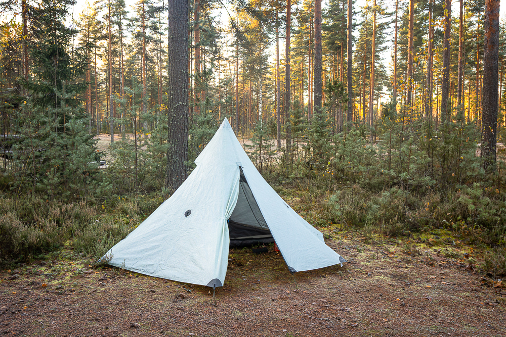 Eniten huomiota telttakierroksella herätti ukrainalaisen Litewayn UltraTNT-kankaasta tehty kuusikulmainen Scout-pyramidi. Puolikkaalla sisäteltalla jää runsaasti tilaa sekä absidin että sisäteltan puolelle, joten yhden hengen talvimajoitteeksi ajatellussa teltassa ei tule ahdasta toisin kuin esim. omassa Midduksessani.